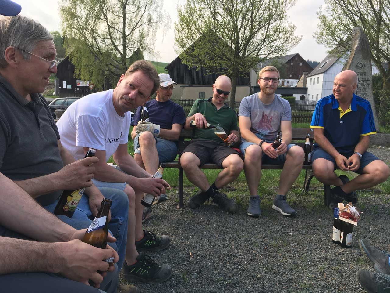 Nach getaner Arbeit ließen es sich die Kameradinnen und Kameraden nicht nehmen auf das Aufstellen anzustoßen und die getane Arbeit bei einem frischen Seidla Bier zu genießen.