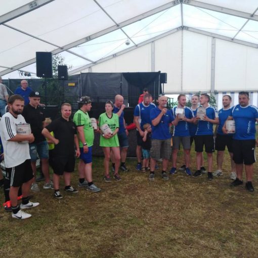 Es wurde viel gefightet und getrickst, manche Mannschaften machten auch eine richtige Taktikbesprechung. Nach vielen Spielen stand nun auch das Ergebnis fest: Gewonnen haben die Junioren der JFG Oberland, auf den zweiten Platz kamen die Trunkenbolde (Mannschaft 1), den dritten Platz belegte das Team Hörath. Weitere Plätze: 4. Feuerwehr Stammbach, 5. Vollgasteam Neuensorg, 6. Team Rühreistudio, 7. Whitstone Kickers, 8. Balla Balerinas, 9. Trunkenbolde (Mannschaft 2) und 10. die Mannschaft Freilos.