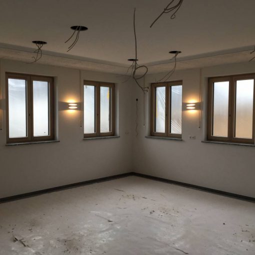 Im Juni wurde außen die weitere Hangbefestigung angebracht und die Wasserleitung Richtung Hohenbuchen vor dem Gebäude verlegt. Desweiteren wurde der Untergrund vorbereitet und die Tiefbaumassnahmen durchgeführt. Im Innenbereich wurde der Gemeinschaftsraum und Küche eingeräumt so dass bald schon erste Veranstaltungen stattfinden können. Weiterhin wurde in der Fahrzeughalle Elektrik- und Holzbauarbeiten vorgenommen.