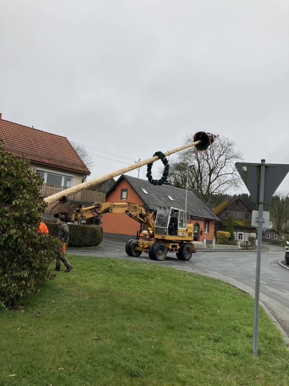 Mit dem abbräumen der Osterdeko Mitte April wurde auch gleich der Maibaum von der Gundlitzer Feuerwehr aufgestellt. Den neuen Baum hat die Firma Holz Prell gespendet. Die Oberflächenbearbeitung wurde von Thomas Bunzel und Tobias Bunzel durchgeführt. Heiko Pittroff führte die Metallbauarbeiten zur Befestigung aus. Die Baumspitze und der Kranz wurden von Carola Prell und Marion Ratschko geschmückt.